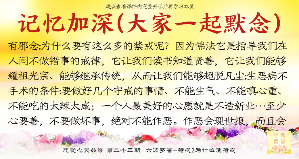 什么是持戒?就是坚决不做不好的事情。忍辱是什么?就是人家骂我了,我就不骂他。。。持戒,守住智慧,清心寡欲。清心是什么意思?就是心要干净。寡欲是什么?寡就是少的意思。欲是什么?欲望。就是让自己的欲望越来越少。