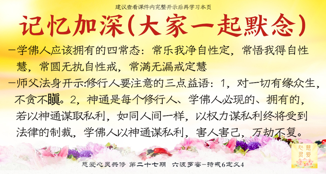 要学会做人间的有情菩萨,常乐我净自性定,常悟我得自性慧,常圆无执自性戒,常满无漏戒定慧,这就是学佛人应该拥有的四常态。