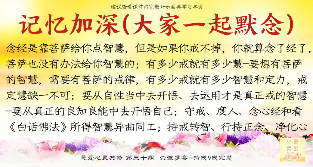 心净是先决条件,心净才能把佛法因果放在心中,不以人间对错评判事物,学佛中能化解烦恼障碍。第一步严守五戒,勤修戒定慧。