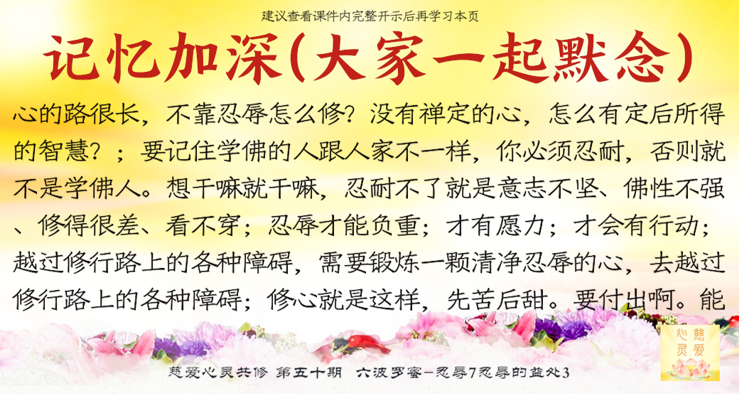 保持正念不伤自己,不伤别人,才能忍辱精进。修心的路很长,不靠忍辱怎么修?没有禅定的心,怎么有定后所得的智慧?