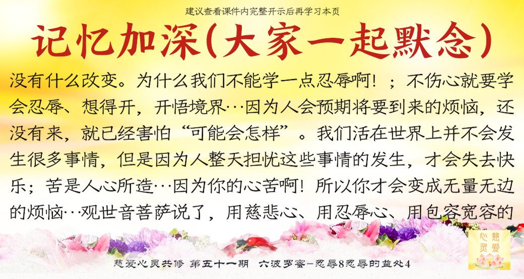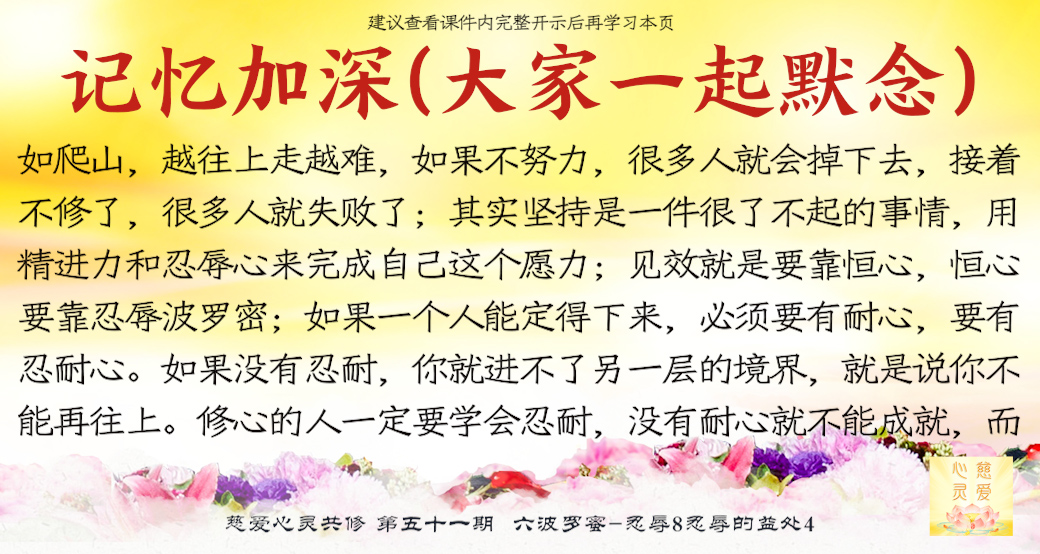 忍耐的人不会伤心,忍耐的人不会刺痛自己的心;不能忍耐才会失守,不能忍耐才会骂人骂到别人的祖宗。要学会珍惜,要懂得忍辱精进。想要保护好自己的心脏、肝脏和心灵,一定要懂得忍辱,学佛的忍辱心就是精进心。