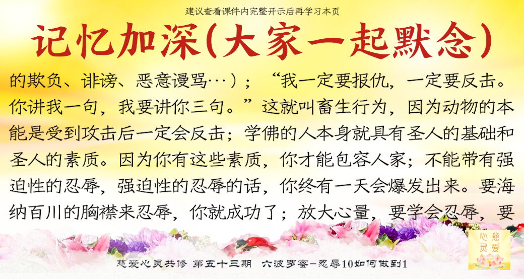 但是也要注意,不能带有强迫性的忍辱,强迫性的忍辱的话,你终有一天会爆发出来。要海纳百川的胸襟来忍辱,你就成功了。