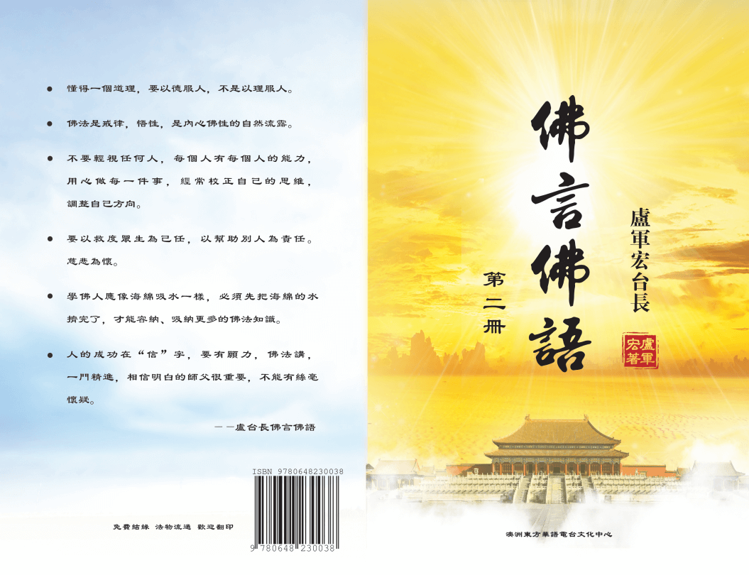 盧台長的“白話佛法”,闡釋的是心的學問,心的原理,心的義諦。佛經說“佛說種種法,為治種種心",這心就是指我們心中的煩惱和無明。心靈法門能根治人們的種種妄心,破迷情妄執,立正法正信,洗滌心靈的污垢, 引領人們認識自己的良心,找回自己的本性,回復本來的性德,開啓人生的智慧,從而脫離人間六塵之束縛,回歸本有的清淨的境界,實現生命的超越。